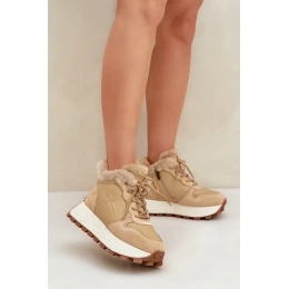 Kožené Sneakersy Trapery Dámské S Kožíškem Na Platformě Big Star OO274A330 Béžové