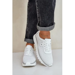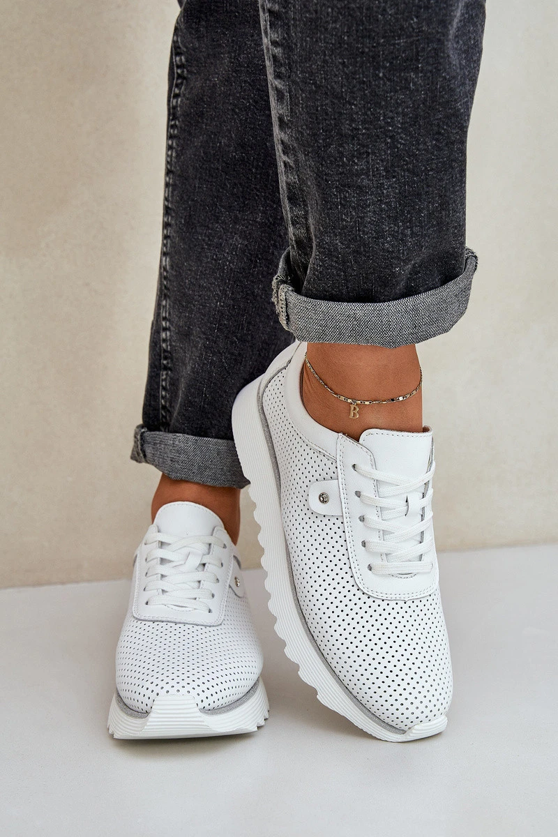 Dámské sportovní boty z přírodní kůže spojují eleganci a pohodlí. Umístěné na platformě s jemným třpytem, dodávají každé stylizaci lesk. Lehká a pohodlná, zajišťují komfort po celý den. Kožená stélka zaručuje odpovídající odpružení a pohodlí při nošení. Tyto boty budou skvělou volbou na každodenní nošení, spojující módní vzhled s funkčností. Při výběru velikosti se řiďte tabulkou velikostí.