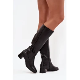 Kožené zateplené dámské kozačky na podpatku Maciejka A7165-01 Černé