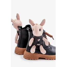 Kožené Zateplené Dětské Kotníkové Boty Na Zip S Medvídkem Vinceza Černé