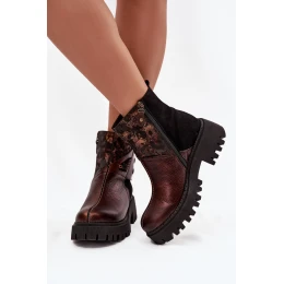 Kožené zateplené kotníkové boty na platformě a plochém podpatku Maciejka 06140-02 hnědé