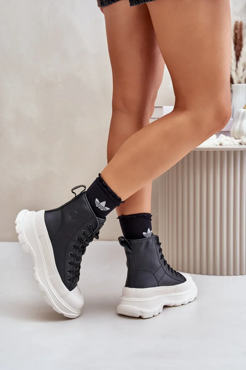 Kožené Zateplené Tenisky Na Masivní Platformě Big Star Černé