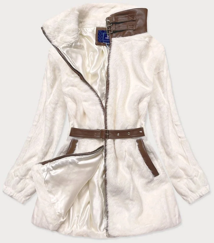 Kožešinová bunda v ecru barvě se stojáčkem (GSQ2228)