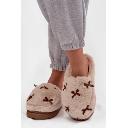 Kožešinové dámské pantofle s mašličkami béžové Saviera