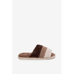 Kožešinové dámské pantofle s pruhy hnědé Tahlisse