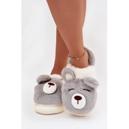 Kožešinové pantofle s motivem medvídka šedé Galine