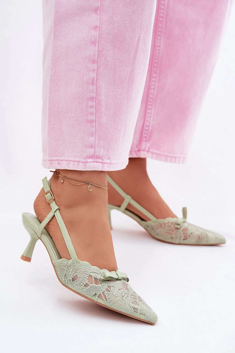 Krajkové dámské sandály na podpatku s mašlí zelené Maribelle