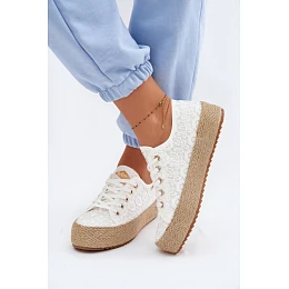 Krajkové tenisky espadrilky na platformě Lee Cooper LCW-26-31-4326 Bílé
