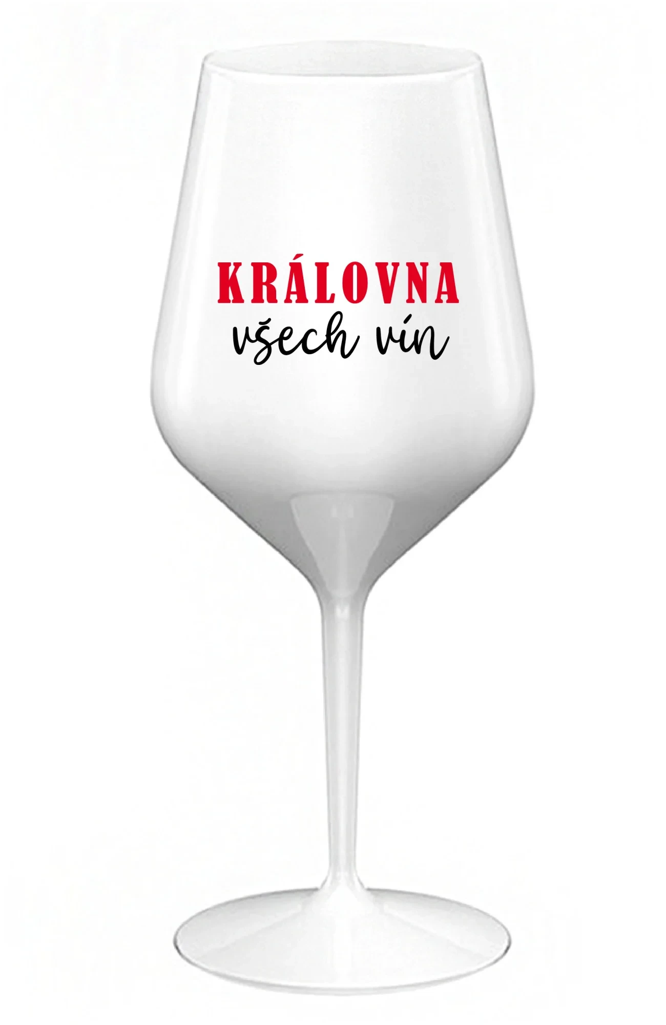 KRÁLOVNA VŠECH VÍN - bílá nerozbitná sklenice na víno 470 ml
