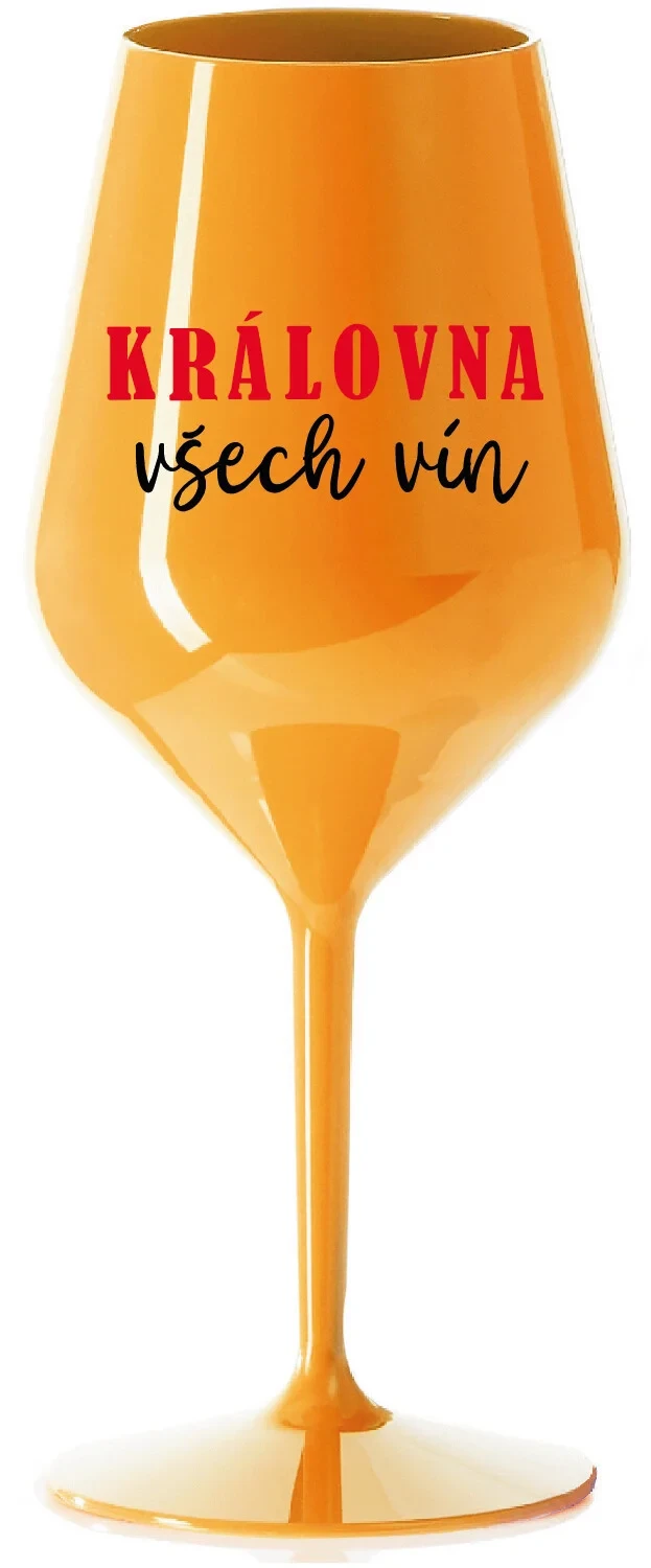 KRÁLOVNA VŠECH VÍN - oranžová nerozbitná sklenice na víno 470 ml