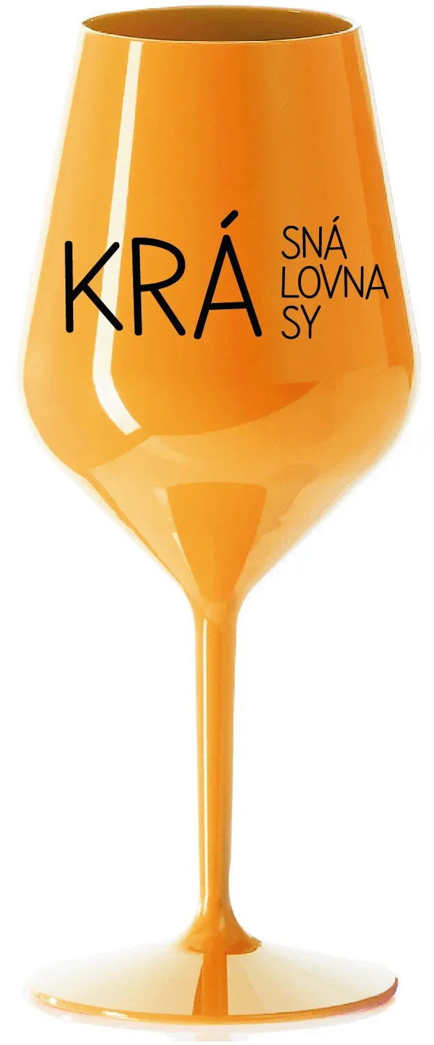 KRÁSNÁ KRÁLOVNA KRÁSY - oranžová nerozbitná sklenice na víno 470 ml