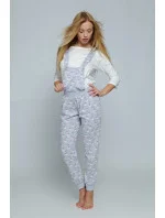 Roztomilá a mimořádně pohodlná souprava sestávající z hladké bavlněné halenky a dupaček s potiskem bílých a růžových soviček, ideální jako domácí oblečení. Dlouhé kalhoty s žebrovanými lemy v chladném odstínu modré, nohavice s manžetami. 100% bavlna.