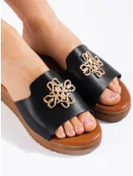Dámské nazouvací zateplené kozačky na podpatku černé olivové