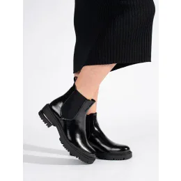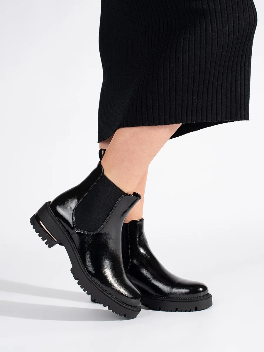 Krásné kotníčkové boty černé dámské na plochém podpatku