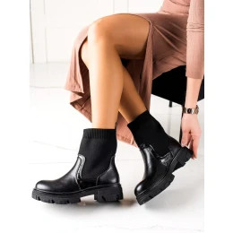 Krásné kotníčkové boty černé dámské na plochém podpatku