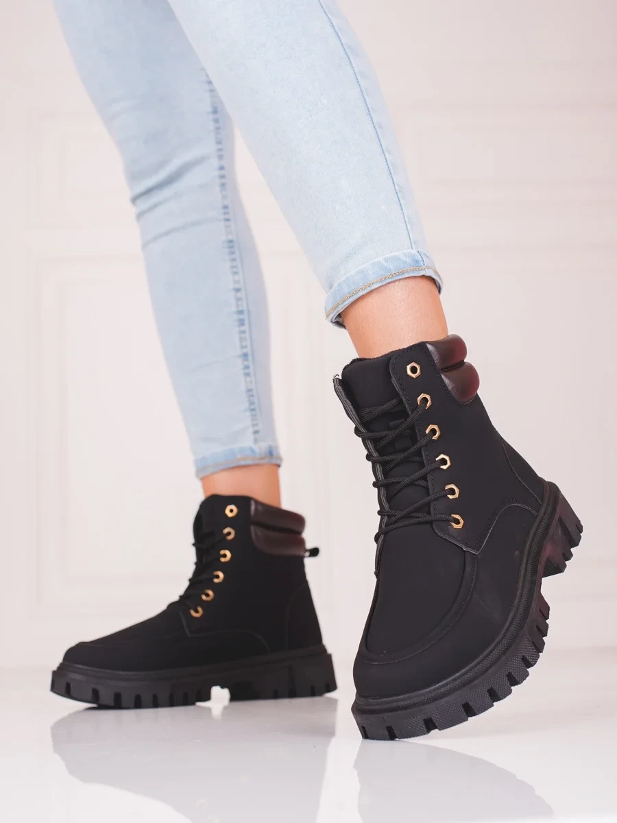 Krásné kotníčkové boty dámské černé na plochém podpatku