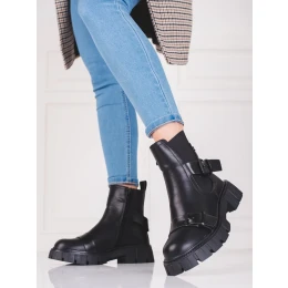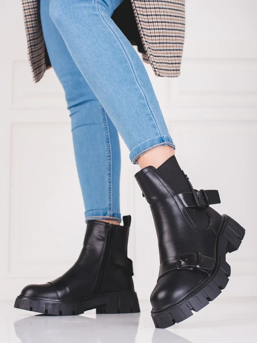 Krásné kotníčkové boty dámské černé na plochém podpatku