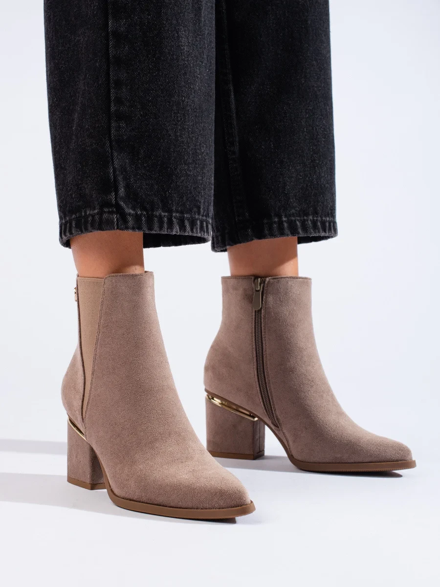 Krásné kotníčkové boty dámské hnědé płaski