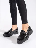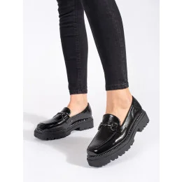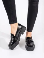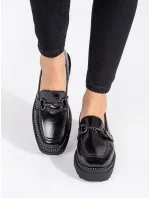 Dámské kožené mokasíny na platformě černé S.Barski LR720