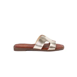 Krásné nazouváky dámské zlaté na plochém podpatku