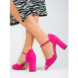 Krásné růžové sandály dámské na širokém podpatku
