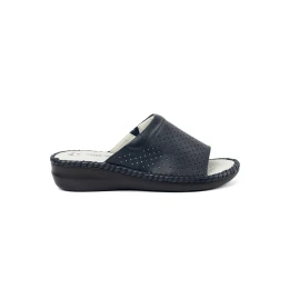 Krásné tmavě modré nazouváky dámské na plochém podpatku