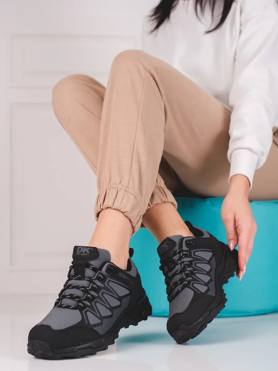 Krásné trekingové boty šedo-stříbrné dámské bez podpatku