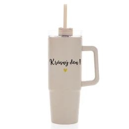KRÁSNÝ DEN - béžový cestovní termohrnek s průhledným víčkem 900 ml