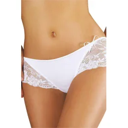 Pohodlné šortky, jejichž boky zdobí krásná květinová krajka. Hladká přední strana s malou saténovou mašlí.