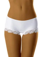 Krásné, hladké šortky zakončené na nohavicích krásnou květinovou krajkou. Vyrobeno z vysoce kvalitní, měkké a pružné tkaniny.