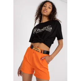 Dámské šortky s elastickým pasem, kapsy na zip. Šortky s ozdobným páskem. Skvěle se hodí pro mnoho stylů.