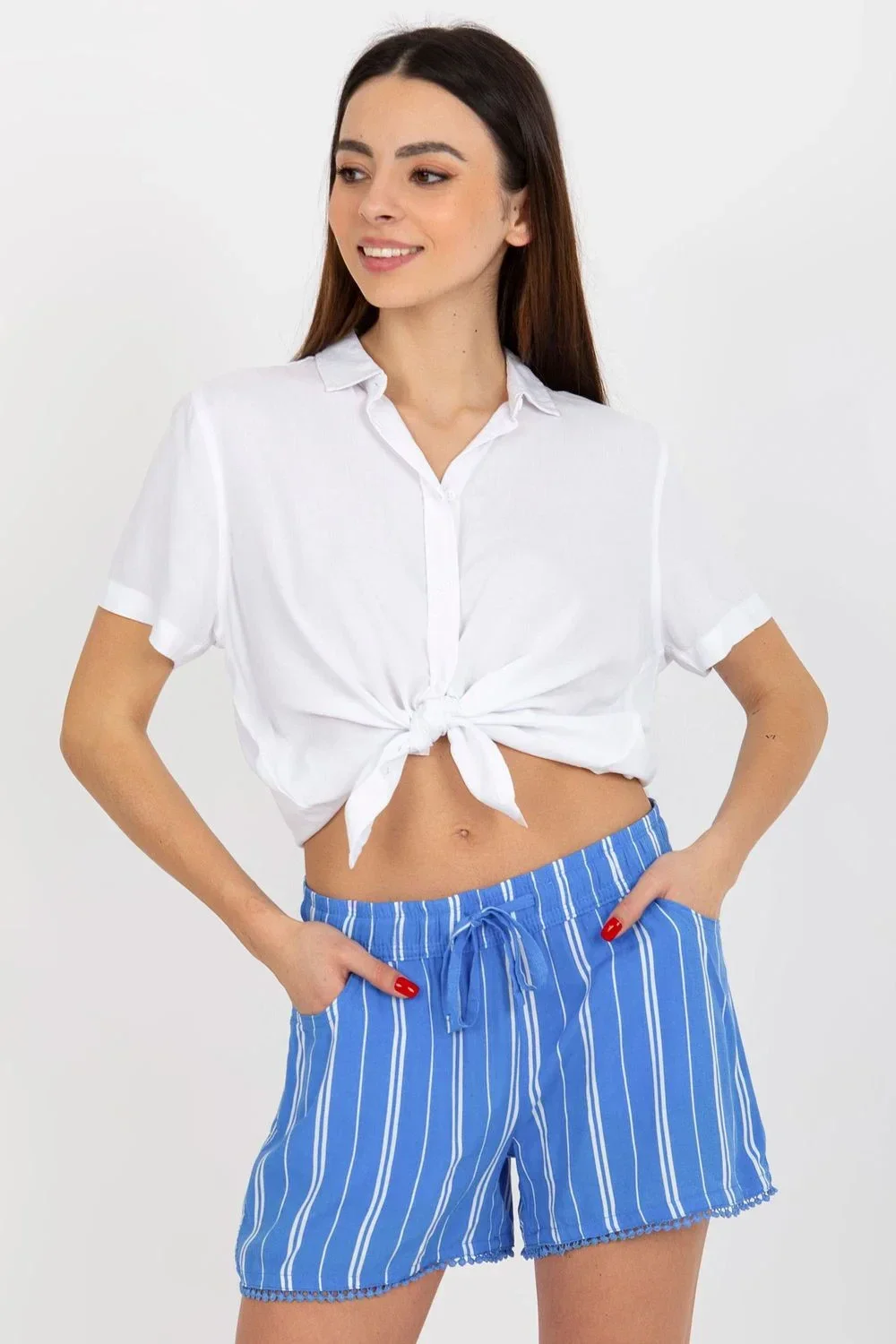 Dámské šortky se zavazováním v pase a kapsami na bocích.