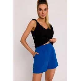 Představujeme výjimečné látkové šortky, jejichž návrh a výroba se hrdě odehrávají v Polsku. Tyto krátké šortky jsou kombinací pohodlí, funkčnosti a polského krejčovského řemesla. Šortky mají mírně rozšířené nohavice, což jim dodává jemný letní charakter. Jsou vyrobeny z vycpávkové látky, díky níž si zachovávají eleganci a dobře sedí na siluetě. Pod pasem jsou záhyby, které šortkám dodávají rafinovaný detail. Šortky se zapínají na háček a zip, díky čemuž bezpečně drží a perfektně sedí na siluetě. Praktickým prvkem jsou boční kapsy, které vám umožní nosit drobné předměty nebo dodají vašemu stylingu ležérní nádech. Tyto šortky jsou nejen pohodlným kouskem letního šatníku, ale také výrazem polského krejčovského řemesla. Návrh a výroba v Polsku jsou zárukou vysoké kvality zpracování a důrazu na detail, díky čemuž je nošení těchto šortek příjemným zážitkem. Jedná se o oděv, který zdůrazňuje styl a zároveň podporuje místní krejčovské dědictví.