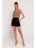 Představujeme výjimečné látkové šortky, jejichž návrh a výroba se hrdě odehrávají v Polsku. Tyto krátké šortky jsou kombinací pohodlí, funkčnosti a polského krejčovského řemesla. Šortky mají mírně rozšířené nohavice, což jim dodává jemný letní charakter. Jsou vyrobeny z vycpávkové látky, díky níž si zachovávají eleganci a dobře sedí na siluetě. Pod pasem jsou záhyby, které šortkám dodávají rafinovaný detail. Šortky se zapínají na háček a zip, díky čemuž bezpečně drží a perfektně sedí na siluetě. Praktickým prvkem jsou boční kapsy, které vám umožní nosit drobné předměty nebo dodají vašemu stylingu ležérní nádech. Tyto šortky jsou nejen pohodlným kouskem letního šatníku, ale také výrazem polského krejčovského řemesla. Návrh a výroba v Polsku jsou zárukou vysoké kvality zpracování a důrazu na detail, díky čemuž je nošení těchto šortek příjemným zážitkem. Jedná se o oděv, který zdůrazňuje styl a zároveň podporuje místní krejčovské dědictví.