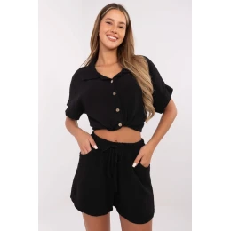 Mušlové kraťasy pro ženy jsou skvělou volbou na každodenní, ležérní outfit v teplejších dnech. Vyrobené z lehké, prodyšné bavlny poskytují maximální pohodlí a volnost pohybu. Hladký materiál a minimalistický střih dělají z kraťasů univerzální kousek, který lze snadno kombinovat s jinými kousky oblečení. Vysoký pas krásně zdůrazňuje pas a široké nohavice dodávají lehkost a uvolněný charakter. Šňůrka v pase umožňuje individuální nastavení a otevřené kapsy zvyšují funkčnost.