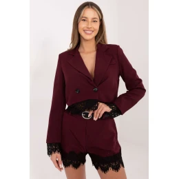 Elegantní dámské látkové kraťasy jsou stylovým návrhem pro ženy, které milují spojení pohodlí a výrazných, elegantních detailů. Ideální na večírek a formální události, skvěle se také hodí do elegantních letních stylizací. Model je vyroben z polyesterové směsi a viskózy, díky čemuž je materiál lehký, prodyšný a krásně padne na postavě. Vysoký pas zdůrazňuje pas a opticky prodlužuje nohy, zatímco široké nohavice dodávají celku eleganci a plnou volnost pohybu. Pro pohodlí je na zadní části pasu vsazena guma, což zajišťuje ideální přizpůsobení bez stlačení. Kraťasy nemají tradiční zapínání, jsou bez zapínání, ale jsou vybaveny zapínacím páskem, který plní jak praktickou, tak dekorativní funkci. Boční kapsy přidávají funkčnost a zdůrazňují elegantní charakter střihu. Výjimečný vzhled modelu dotvářejí džety umístěné na materiálu, které dodávají moderní, večerní lesk. Spodní okraj nohavic je zdoben decentní krajkou, která celku dodává ženský, efektní finiš. Tyto kraťasy jsou ideální volbou pro ženy, které chtějí vyniknout elegancí v osvěžené, moderní formě.