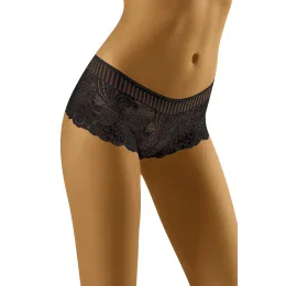 Pohodlné a elegantní šortky od známého výrobce Wol-Bar. Perfektně sedí na těle, neomezují v pohybu a vypadají velmi dobře. Vyrobeno z jemné, jemně průhledné krajky. Linie boků je zvýrazněna žebrovaným vzorem.