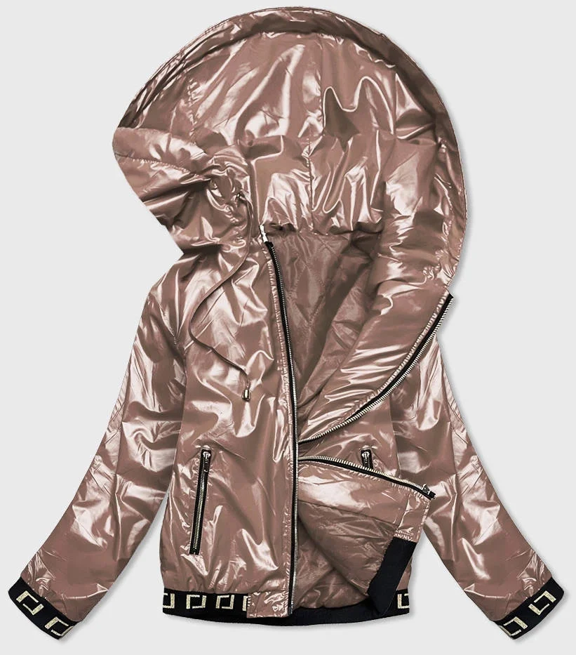 Krátká béžová dámská bunda s kapucí (B9787-12)