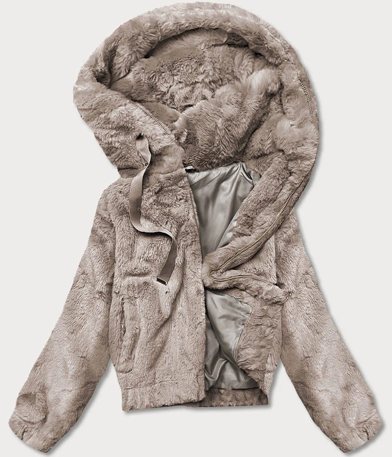 Krátká béžová dámská kožešinová bunda (B8050-12)