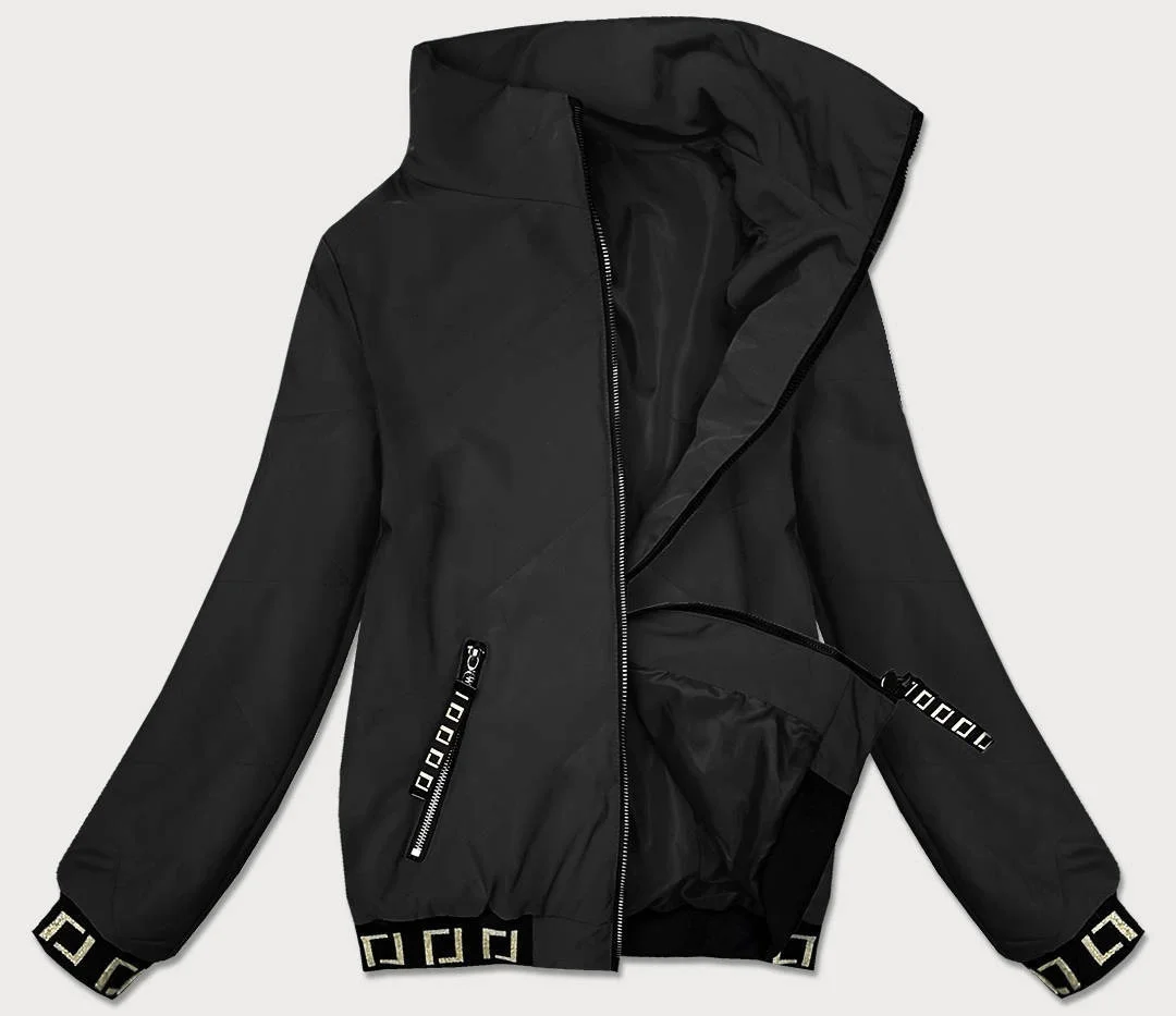 Krátká černá dámská bunda se stojáčkem (B8016-1)
