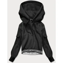 Krátká černá dámská tepláková mikina se stahovacími lemy (26030)
