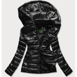 Krátká černá prošívaná dámská bunda s kapucí (CAN-333)