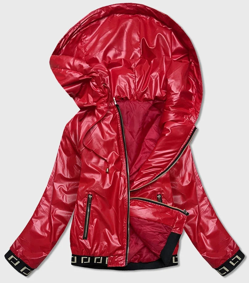 Krátká červená dámská bunda s kapucí (B9787-4)