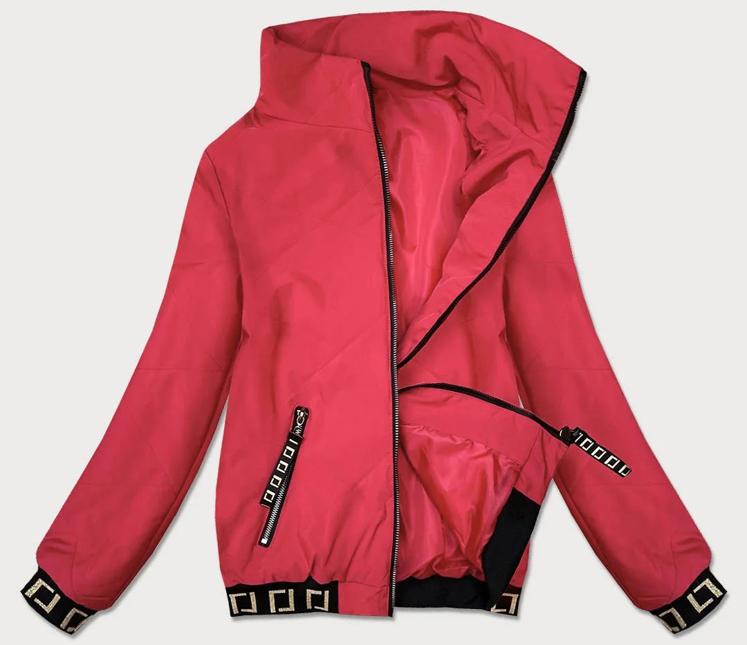 Krátká červená dámská bunda se stojáčkem (B8016-4)