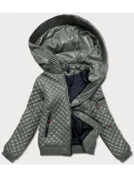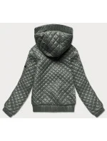 Krátká prošívaná bunda v khaki barvě se stahovacími lemy (7261)