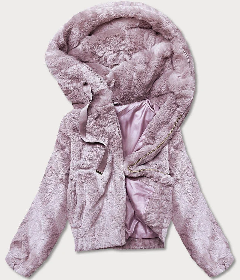 Krátká růžová dámská kožešinová bunda (B8050-81)