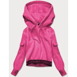 Krátká růžová dámská tepláková mikina se stahovacími lemy (26030)