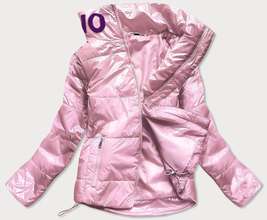 Krátká růžová prošívaná dámská bunda se stojáčkem (B9567)