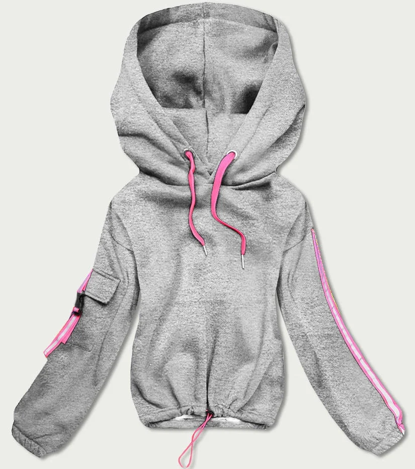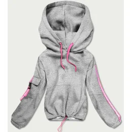 Krátká šedá dámská bavlněná tepláková mikina (26031)