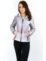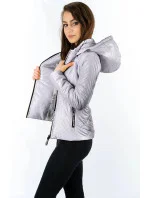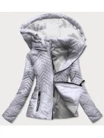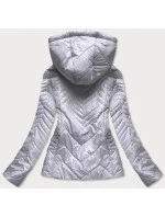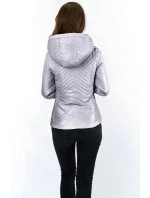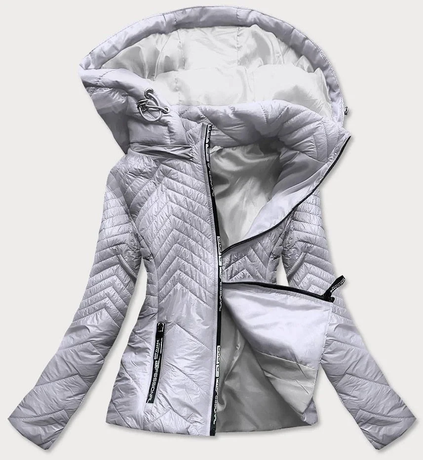 Krátká šedá prošívaná dámská bunda s kapucí (B9566)